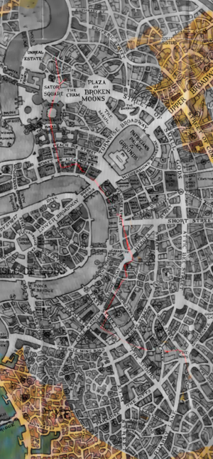 - "A shallow sewer, running from the Brass Bridge and then around the Rimward edge of the Patrician's Palace."